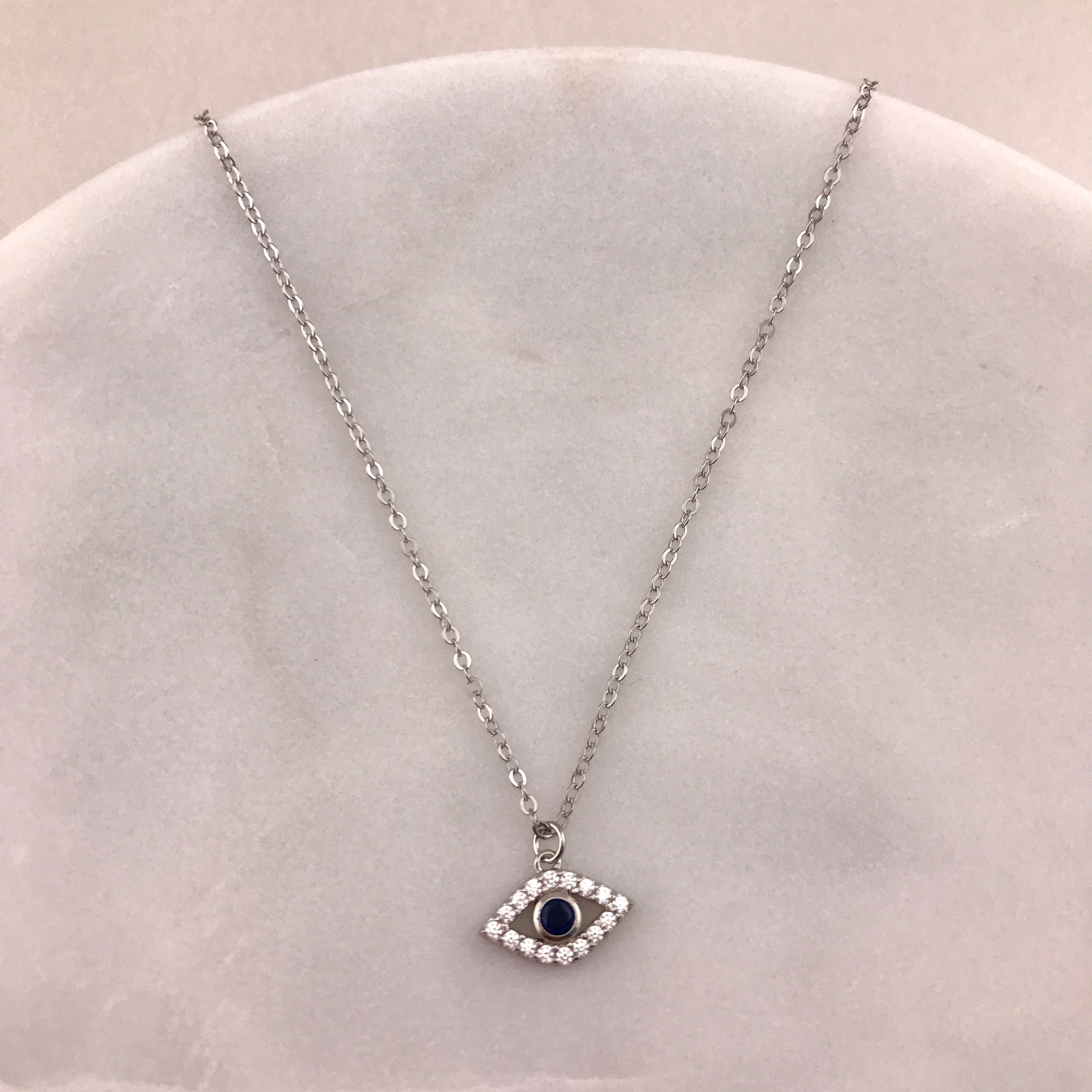 Simple and dainty, great to layer or wear on its own! Protect yourself from the evil eye with this 14k Gold Vermeil over 925 Sterling Silver Evil Eye with Cubic Zirconia stones.