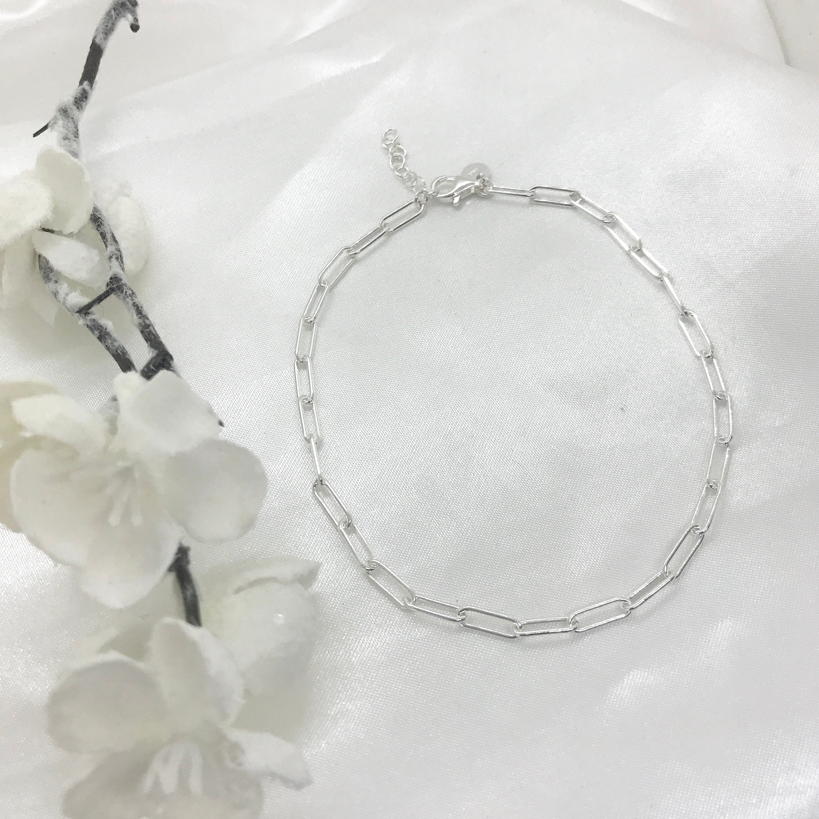 925 Sterling Silver Paperclip Anklet