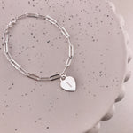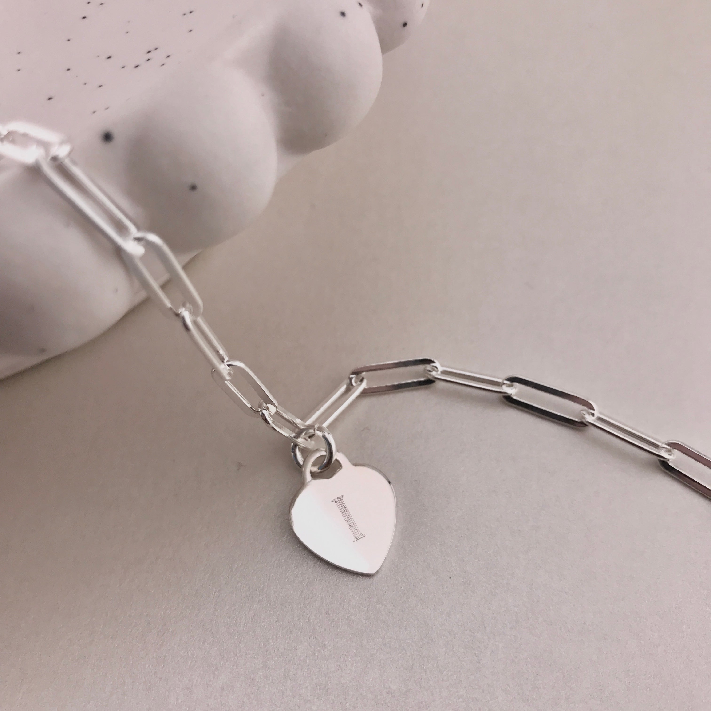 Engravable - 925 Sterling Silver Paperclip Bracelet with Heart Charm